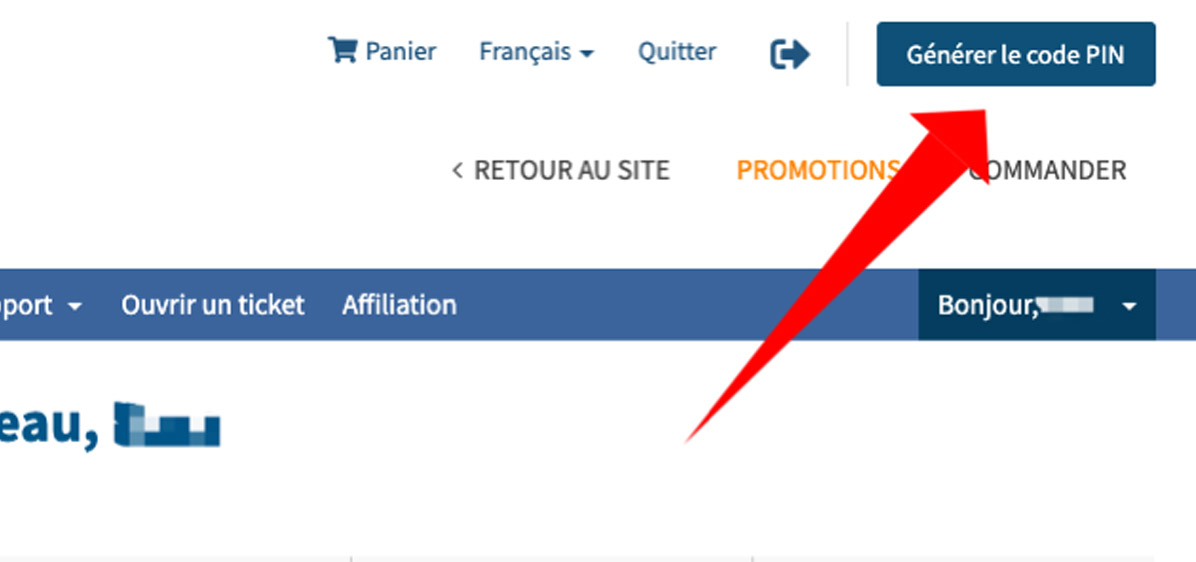 - Cliquez ensuite sur le bouton « Générer le code PIN » situé en haut de l’espace client.